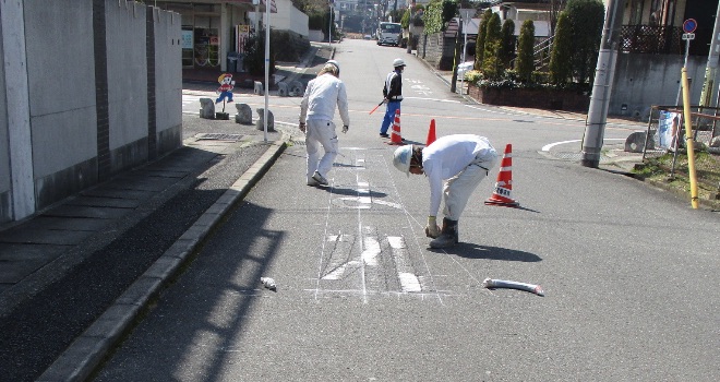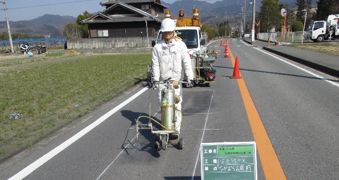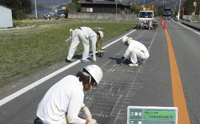 区画線・舗装 大宝地区1 施行中 大宝地区2 施行中 大宝地区3 施行中 大宝地区4 施行中 大宝地区5 施行中 なかむら公園前交差点1 施行中 なかむら公園前交差点2 施行中 区画線1 区画線2 なかむら公園前交差点3 道路工事 区画線・舗装 防護柵・標識 その他